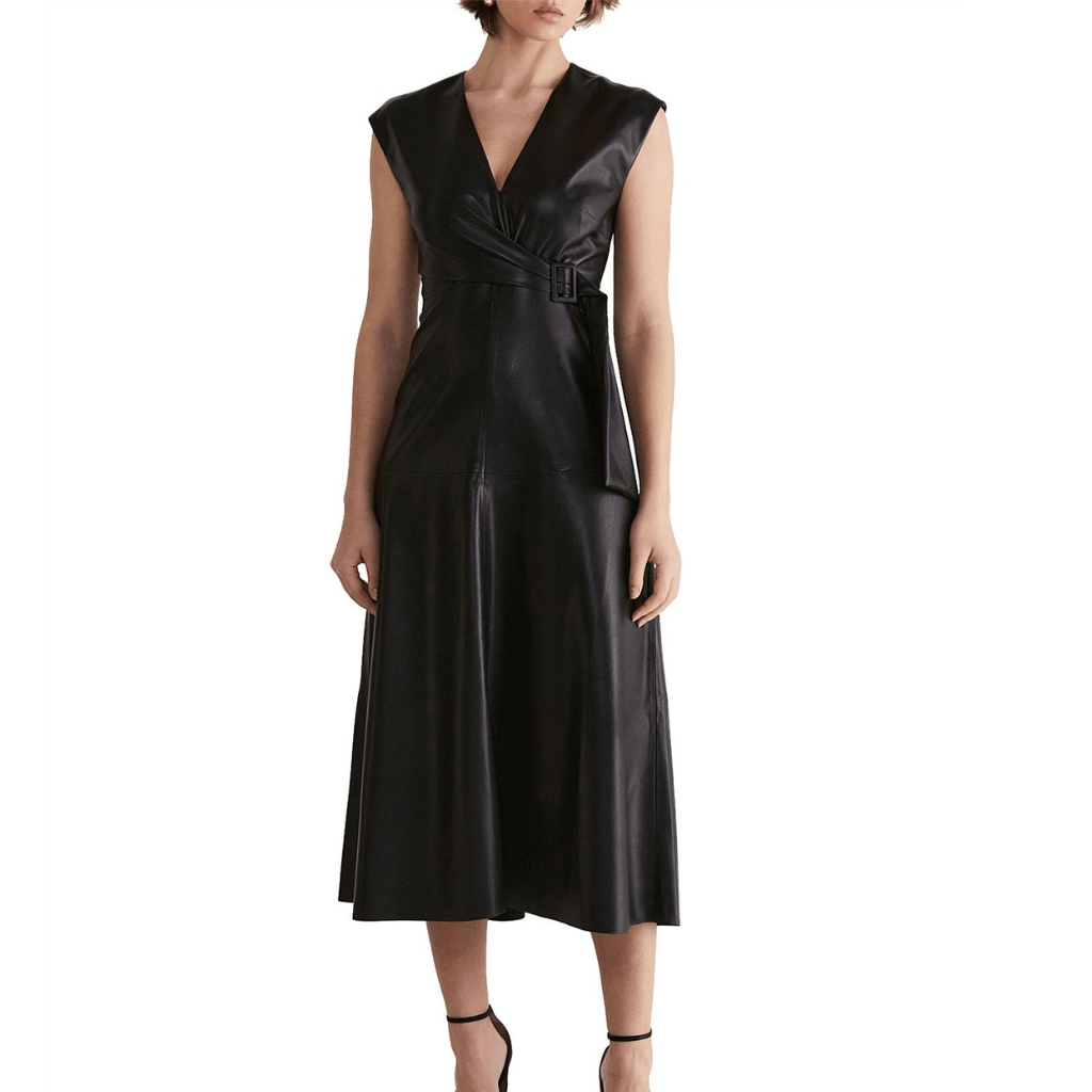 A wrap leather dress looks elegant and suits many body types. It creates a natural waist shape and looks perfect for: