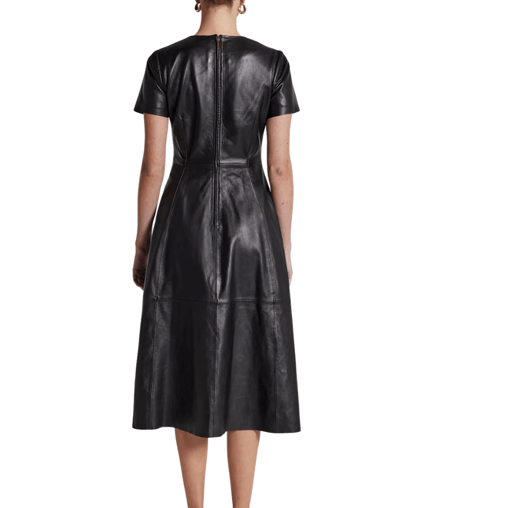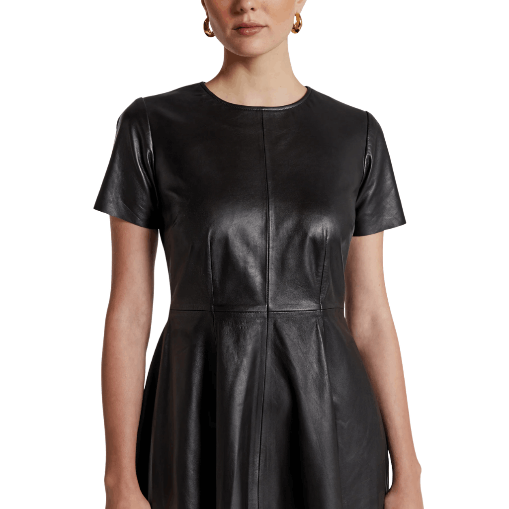 Elevate your wardrobe with this A-Line Black Leather Dress for Women, designed for modern versatility. Crafted from 100% lamb leather, this black leather dress offers a luxuriously soft feel while ensuring durability and long-lasting wear.