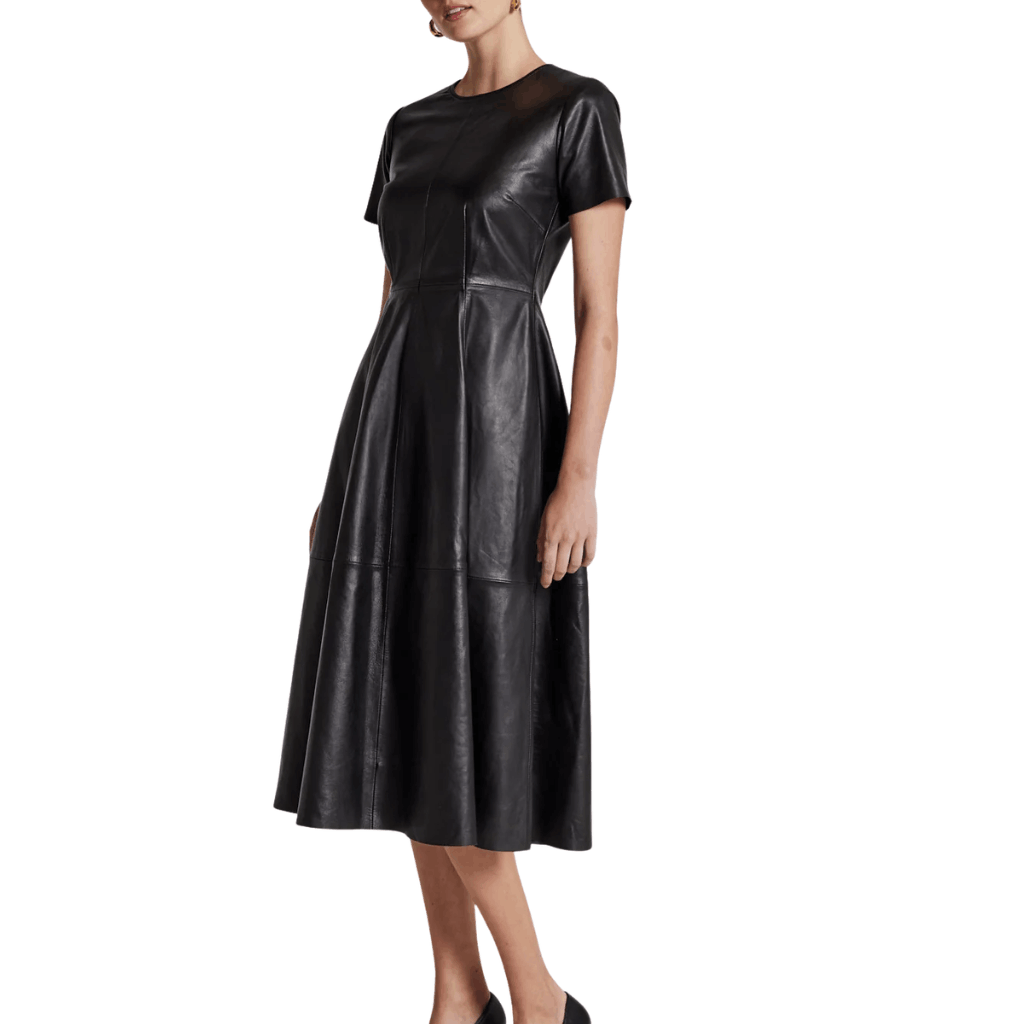A-Line Black Leather Dress For Women