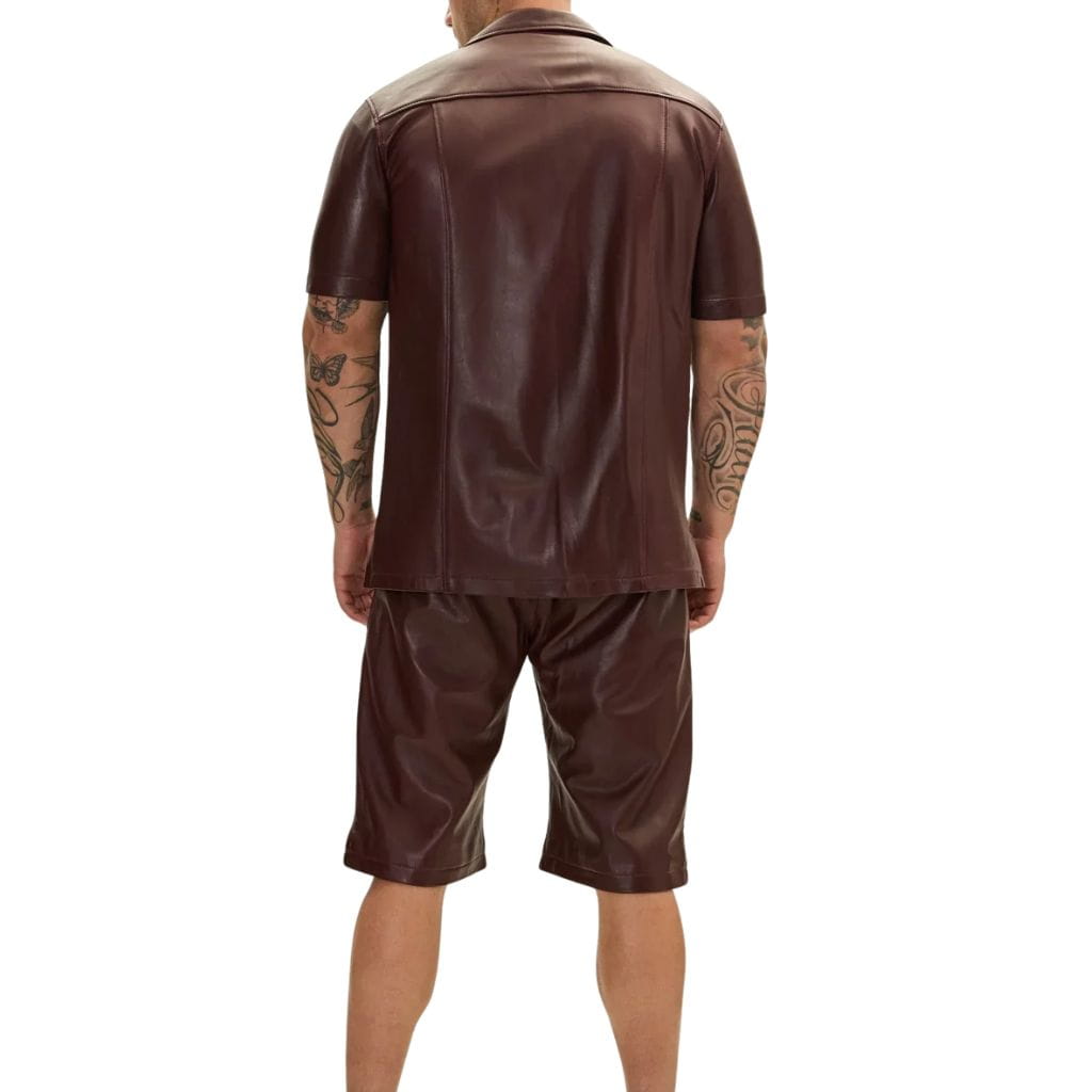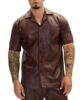 Be the first to review “Burgundy Short Sleeve Men Leather Shirt”