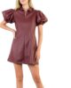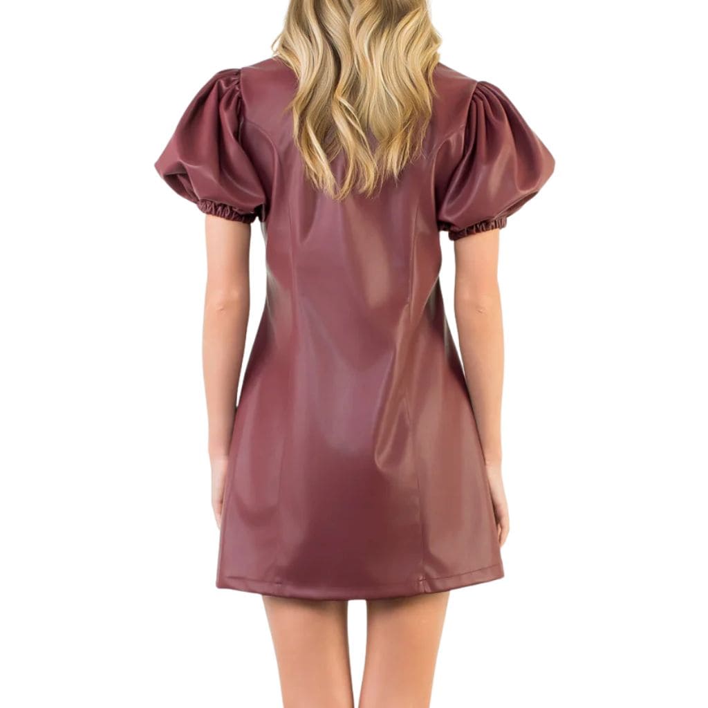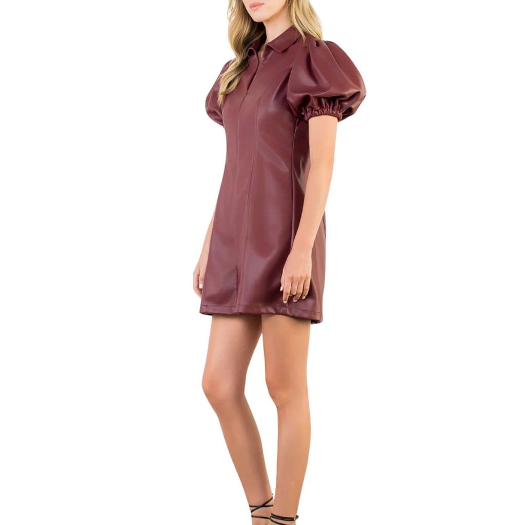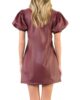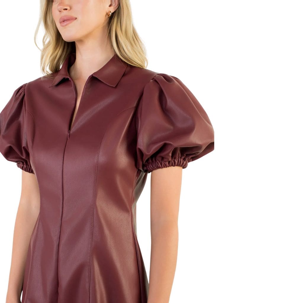 Puff Sleeve Burgundy Leather Dress