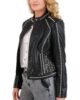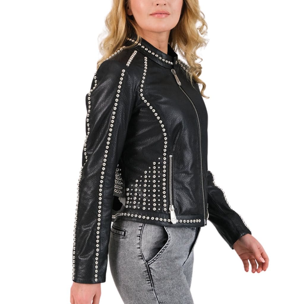 Turn heads with this bold and stylish Studded Patterned Women’s Black Leather Biker Jacket for this Halloween, designed for those who love to stand out the most. Crafted from 100% real lambskin leather, this women’s Black Leather Biker Jacket is linked with edgy detailing and timeless biker appeal.