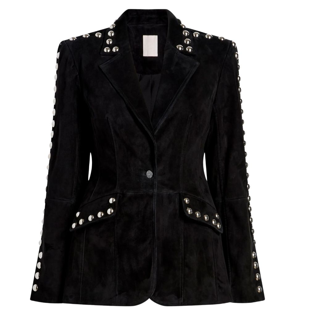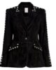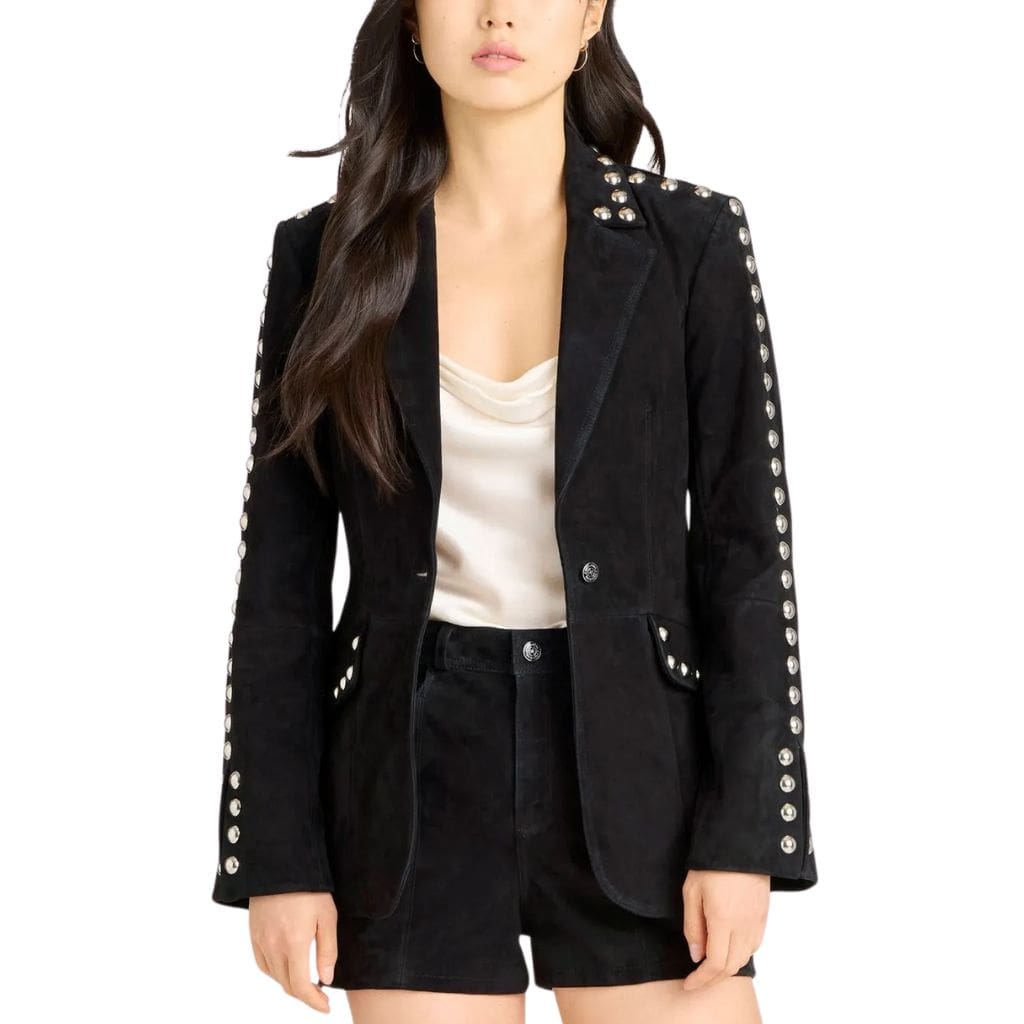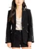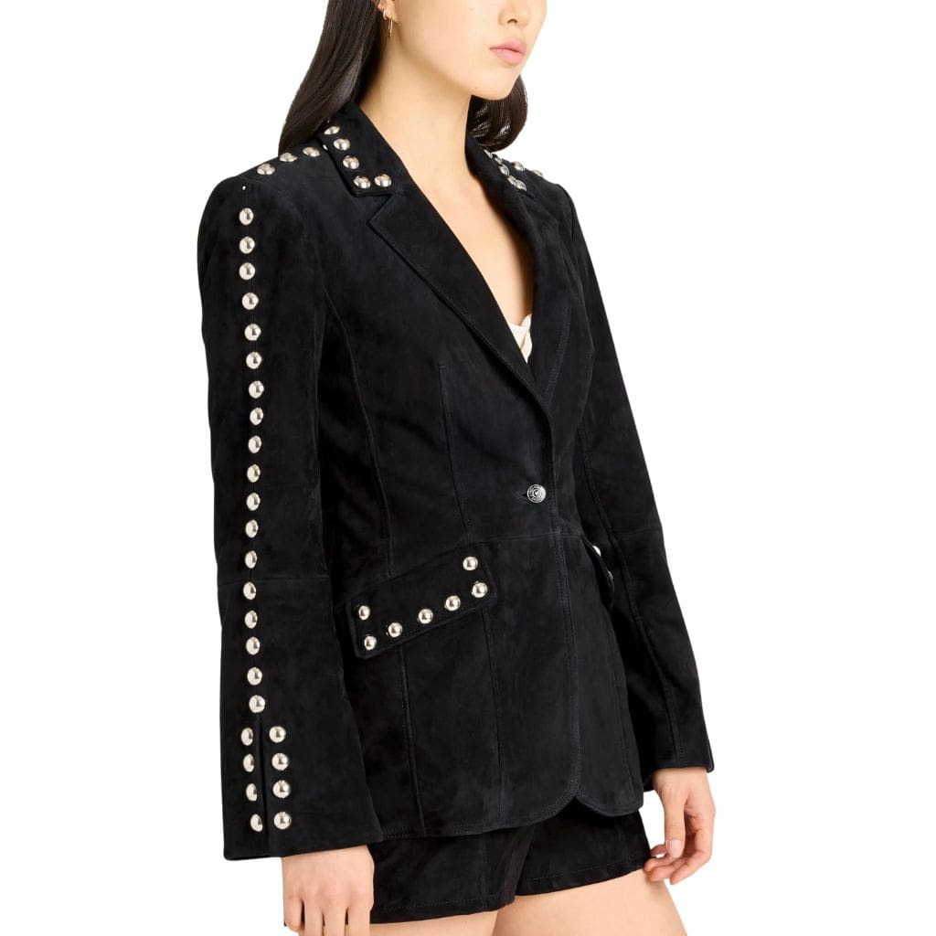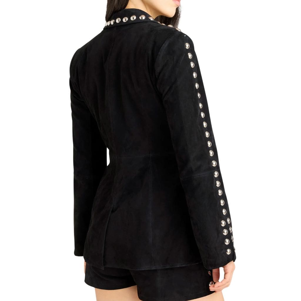 Women Studded Suede Leather Blazer Black