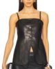 Best to wear with jeans, skirts, or layered under a jacket, this leather button-front tank top is a multipurpose piece, wear it day to night.